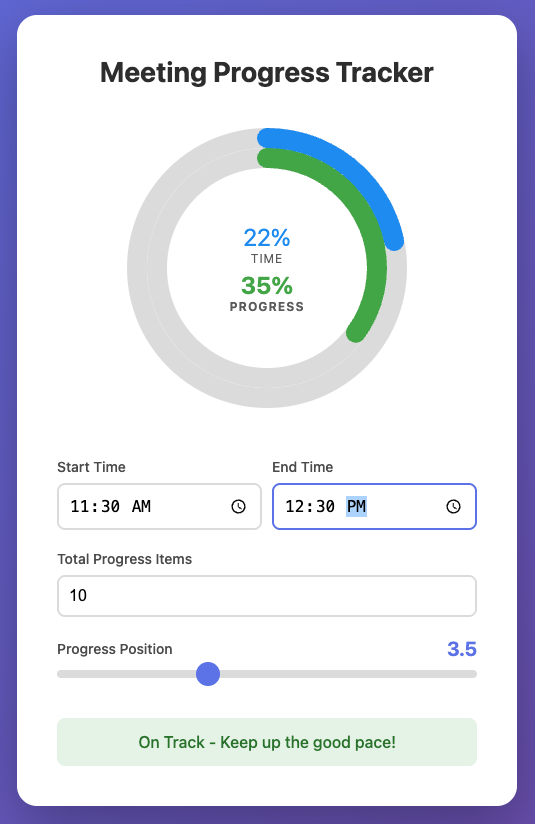 A simple timer for tracking meeting progress vs. duration