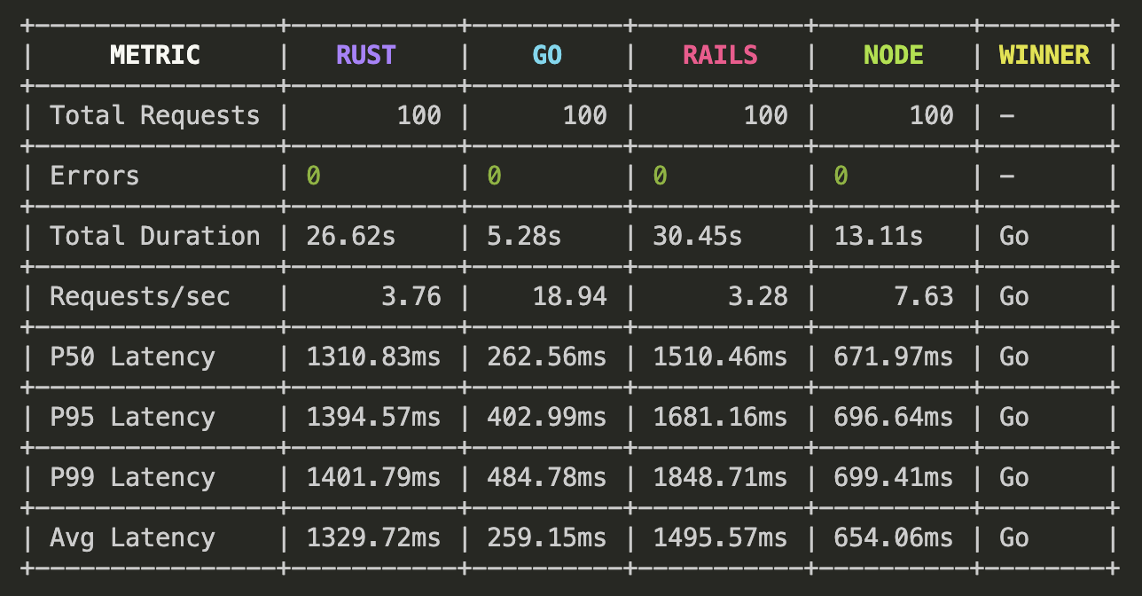 Benchmarks for various webserver languages and frameworks. I know it's very difficult to compare apples to apples. This repo doesn't try to be thorough, but it does provide a starting point for a simple comparison.